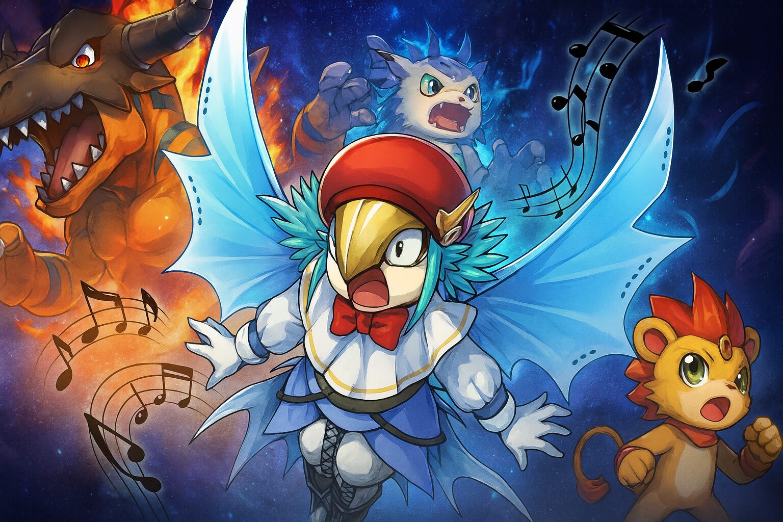 マリンエンジェモンと併用すれば、状態異常とステータス低下の両方に対応でき、戦闘が極めて安定します。性格スキルは「大いなる抱擁」で最大HPを1万999まで引き上げることで、長期戦でも崩れない耐久パーティを作れます。