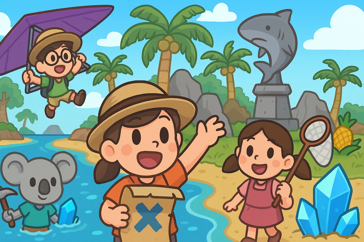 島のどこかにある サメ像に古い鍵5個を捧げると宝の地図が入手 できます。