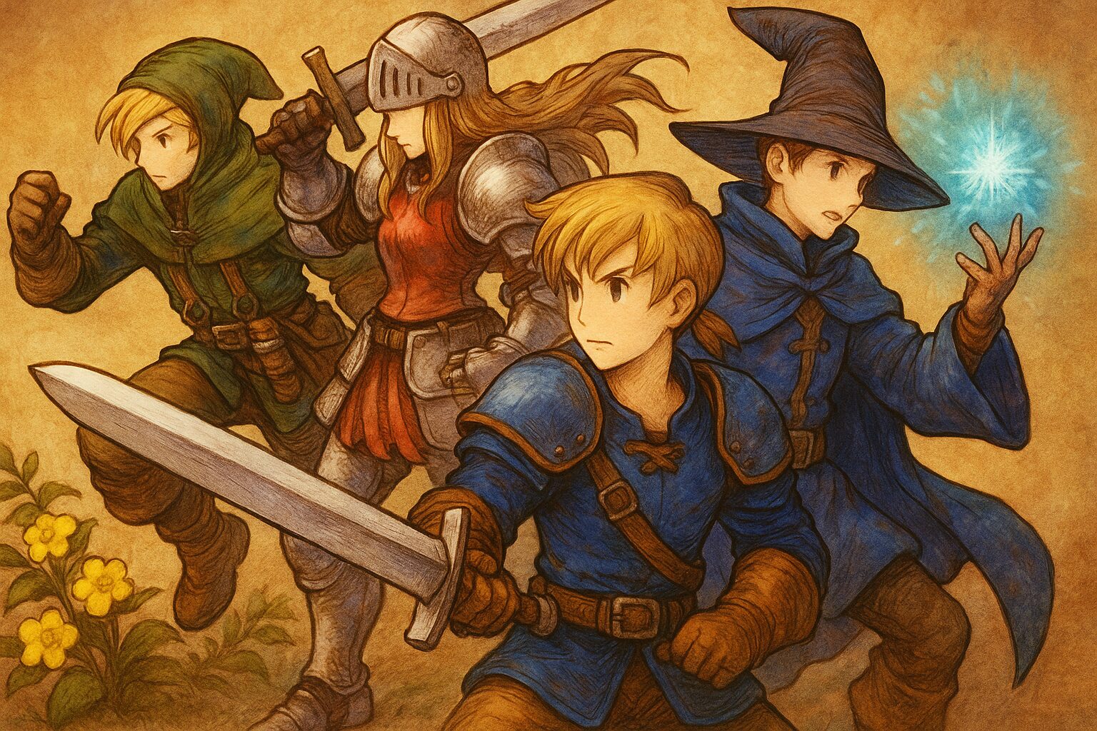 忍者は防御力が低いため、ナイトやモンクのスキルを組み合わせることで真価を発揮します。序盤からシーフを数名育てておくと、後半の盗み要素や火力強化がスムーズです。