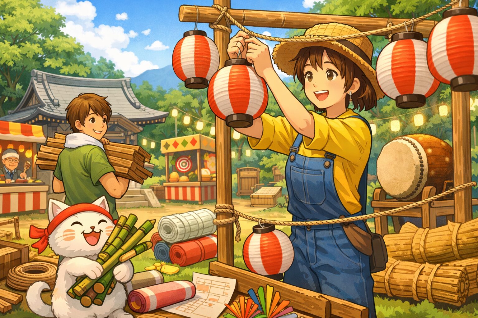 竹もイベント準備で大量に必要になります。特に夏祭りでは竹素材を多く使うため、見つけたら回収しておくと後の準備が楽になります。