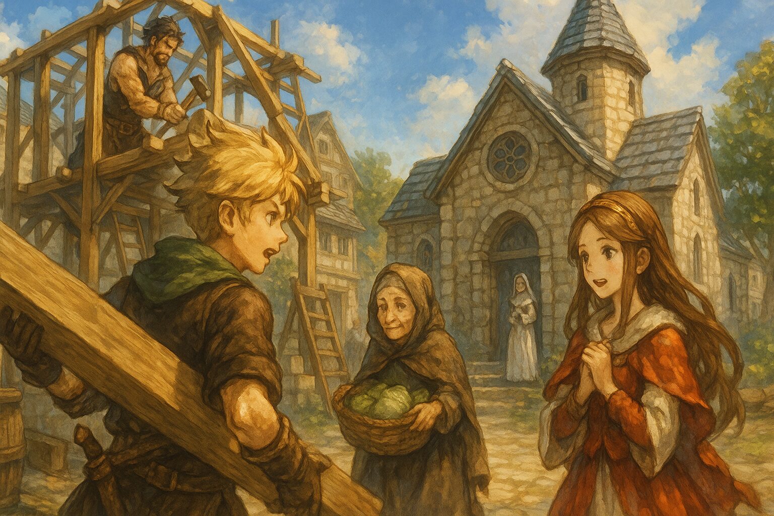 タウン復興は進行に応じて建物が順番に解放されていきます。最初に建築工房が立ち、続いて酒場、商店、訓練所が建設可能になります。その後しばらく進行すると、タウンレベル6の直前で教会が建てられ、そこから聖火を灯すものへと繋がっていきます。この流れを理解しておくことで、無駄なグレードアップを避け、必要な施設を最短で強化できます。特に復興の核になるのは「商店」「訓練所」「教会」の3つです。この3施設をどれだけ早く整えるかで、進行速度は大きく変わります。