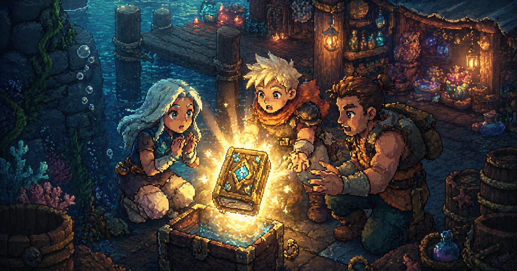具体的には、海を泳いで進んだ先にある桟橋の下にショップが存在しています。