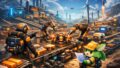 レールは資源輸送だけでなく、電力供給も担います。採掘機と輸送装置をレールで接続するだけで、遠隔地でも稼働させることが可能です。