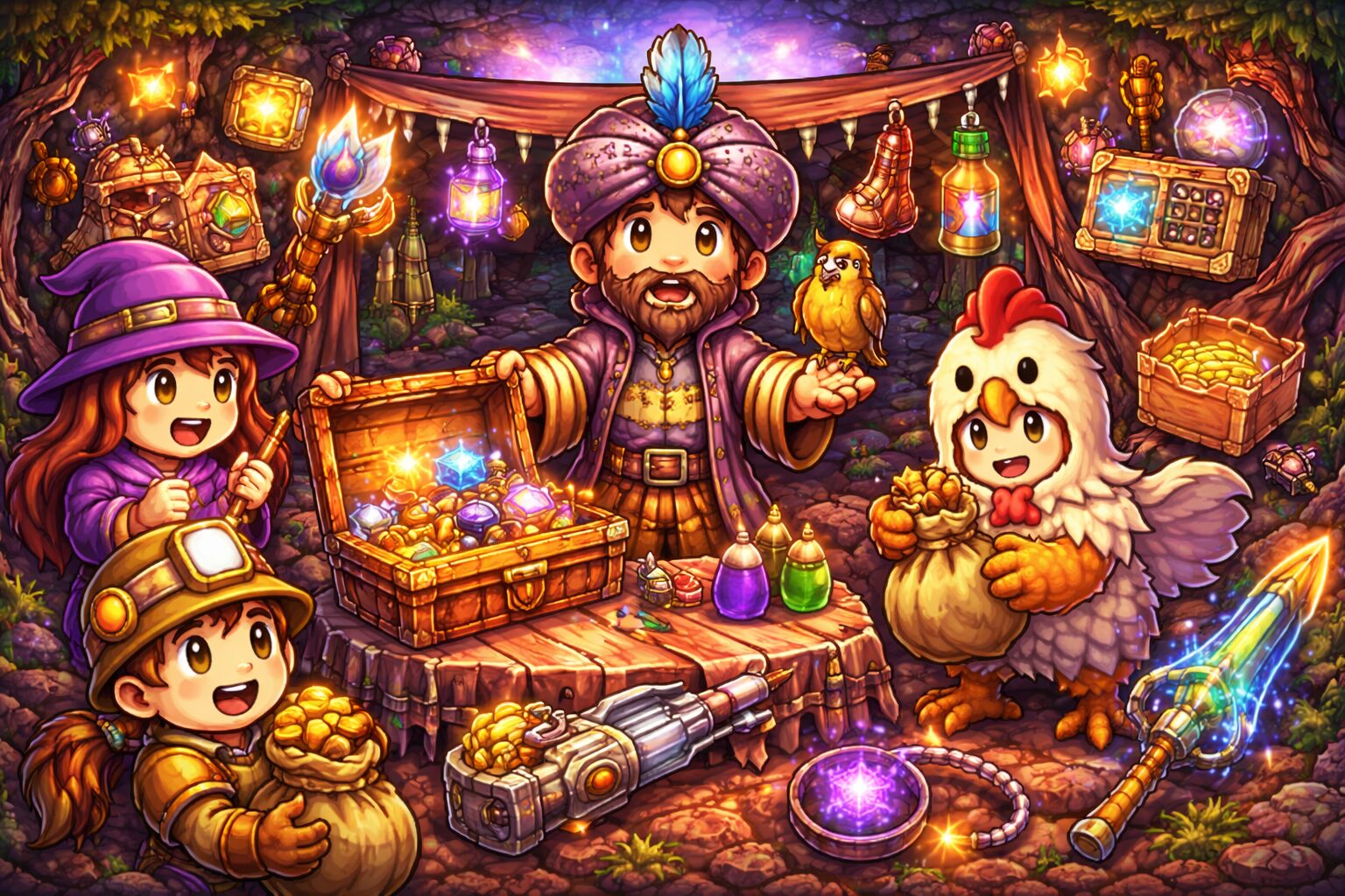 旅商人は、拠点に不定期で訪れる特別なNPCです。衣装や家具といった見た目用アイテムに混ざって、攻略や探索を大きく快適にしてくれる有能な道具を販売することがあります。問題は、いつ何を売るかが完全にランダムである点です。そのため、事前に「本当に買うべきアイテム」を把握しておくことが重要になります。